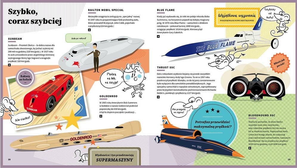 Zobaczcie, z jakich części składa się samochód oraz jak działa jego silnik. Przedstawiamy też słynnych konstruktorów, odważnych kierowców i ich szalone rekordy prędkości.