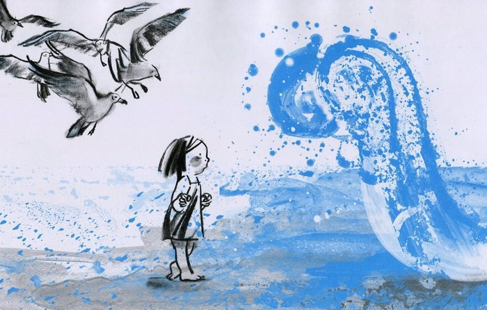 Suzy Lee połączyła te trzy motywy i stworzyła z nich obrazową podróż przez żywioły, ilustratorskie arcydzieło, które nie potrzebuje słów, aby opowiedzieć historię uniwersalną. Mistrzowsko prowadząc linie i kolory, Suzy Lee kreśli ujmujące w swej naturalności zdarzenie, odkrywa potęgę natury i odcienie przyjaźni, a nawet poszczególne części struktury kompozycyjnej książki.
