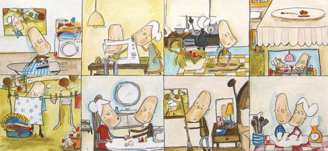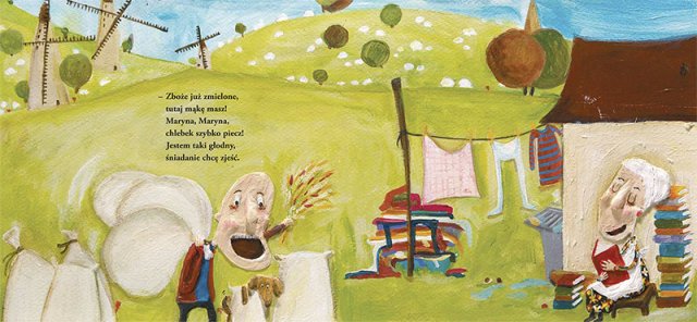 Hiszpańska interpretacja historii o Marynie, która nie chciała robić pierogów Maciejowi. Tym razem spokojnym życiem rodzinnym zatrzęsie awantura o chleb. Zakończenie - na miarę nowych czasów - przyniesie współpracę małżonków, którzy w partnerstwie odnajdą nową wartość. Publikację wydano w ramach projektu Opowiadania na tacy (Cocina de cuentos. Europa a la carta) współfinansowanego z Programu Kultura Unii Europejskiej.