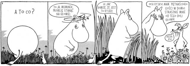 Pozycja obowiązkowa dla wszystkich miłośników i znawców trolli. To dopiero pierwszy tom komiksu w odcinkach, który Tove publikowała w London Evening. Jednych może boleć to, że Muminki w komiksowych paskach są „już nie te”, inni potraktują zbiór jako okazję to zabawy – tak jak zrobiła to autorka wrzucając bohaterów subtelnych opowieści w wymagający skrótów format komiksu. Ciekawe. (źródło: ladnebebe.pl)
