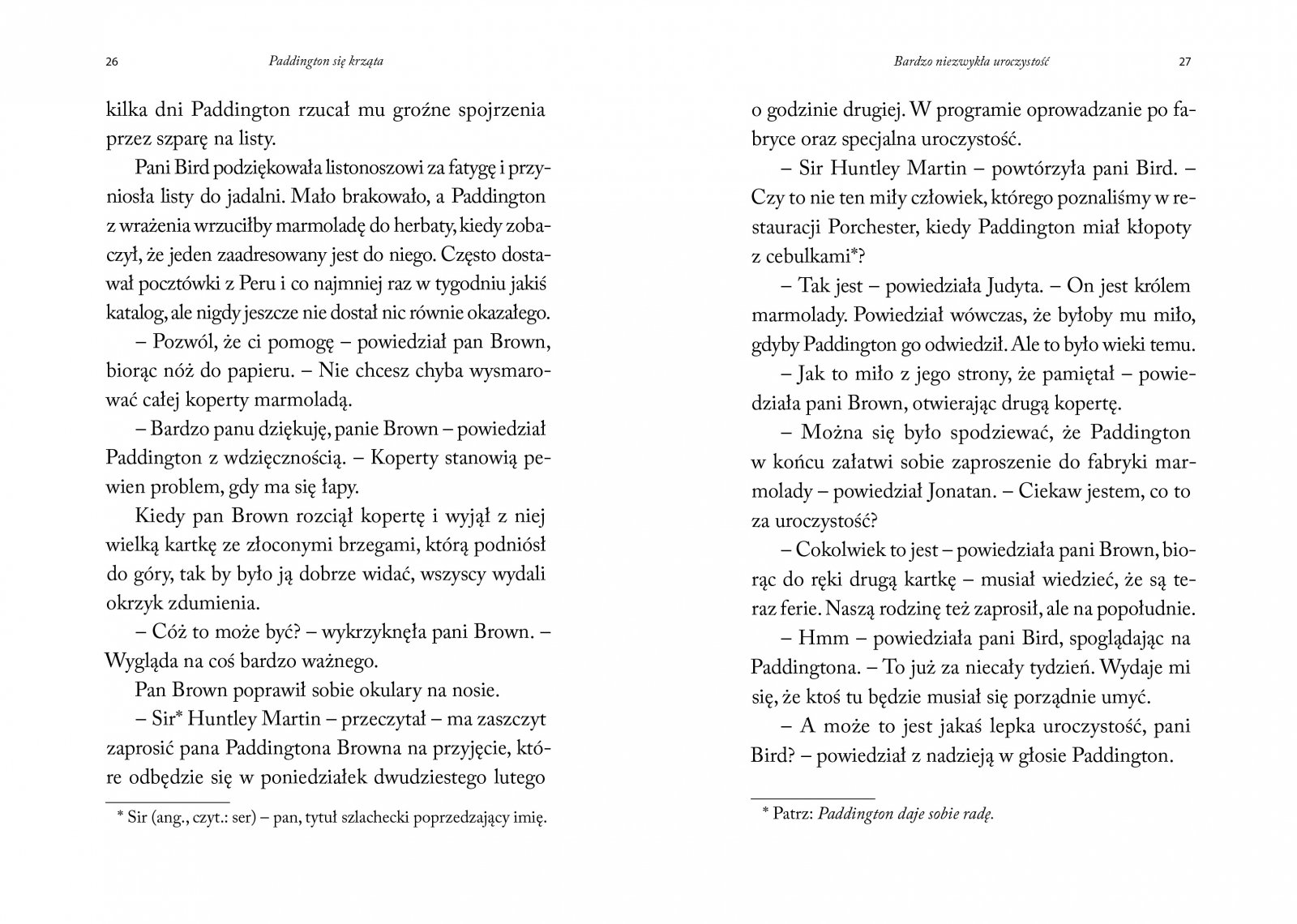 Paddington naprawdę się krząta w domu państwa Brown, dzięki czemu zwykłe domowe zdarzenia nabierają wymiaru ciekawych przygód. Miś bardzo się stara i nawet czyszczenie komina nie jest dla niego straszne. Potem wystarczy się tylko umyć... Zwiedzanie fabryki marmolady i wyprawa do Muzeum Figur Woskowych dostarcza nie mniej mocnych wrażeń. Kolejny tom w serii przygód misia Paddingtona ukazuje się w nowym przekładzie Michała Rusinka. Wkrótce wystartuje serwis edukacyjny do nauki języka angielskiego z Misiem Paddingtonem. Serwis, pomyślany z myślą o najmłodszych, będzie okazja zarówno do nauki, jak i świetnej zabawy. Tej jesieni Miś Paddington zagości w Polsce również w postaci gadżetów. Kudłate misie będą niewątpliwą frajda dla prawdziwych fanów nietypowego niedźwiadka.