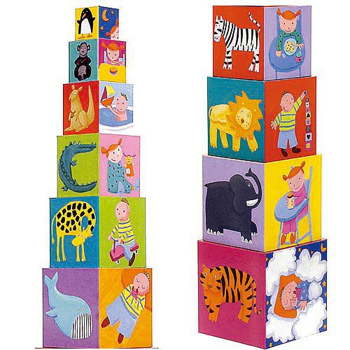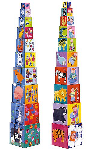 Na jednej ścianie pojawią się wesołe zwierzaczki , na drugiej widzimy ukryte liczby- oglądamy , opowiadamy i pomagamy w nauce liczenia. Wieżę można oczywiście burzyć i chować pudełeczka jedno w drugie.