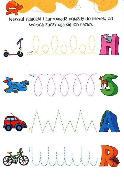 Użyj gąbki do zmywania, a pisaka do pisania! Pierwsze próby w rysowaniu szlaczków po śladzie, pisanie liter i krótkich wyrazów to bardzo dobry sposób na przygotowanie dziecka do nauki pisania. Dziecko pisze lub rysuje po liniach przerywanych, uczy się poprawnie trzymać pisak, ćwiczy się w cierpliwości i dokładności. Zaletą serii jest zmywalny papier – zwilżoną gąbką lub chusteczką można usunąć nieudaną linię i narysować ją ponownie.