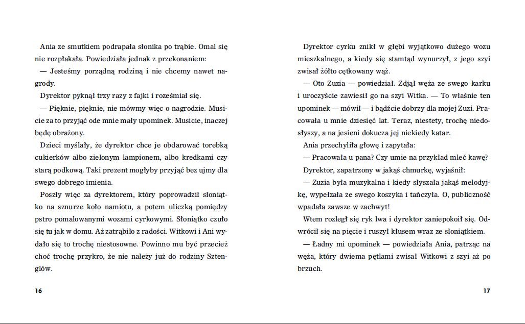 Nagle ktoś zapukał do drzwi wejściowych. Na klatce schodowej stał jakiś pan, a obok niego słoniatko. Był to mały, bardzo młody słonik. Miał pomarszczona mordkę i madre, nieco smutne oczy. - Ten słoń to prezent na twoje urodziny, Witku - powiedział nieznajomy. - Nazywa się Bravo i nie zrobi w mieszkaniu żadnego nieporzadku.